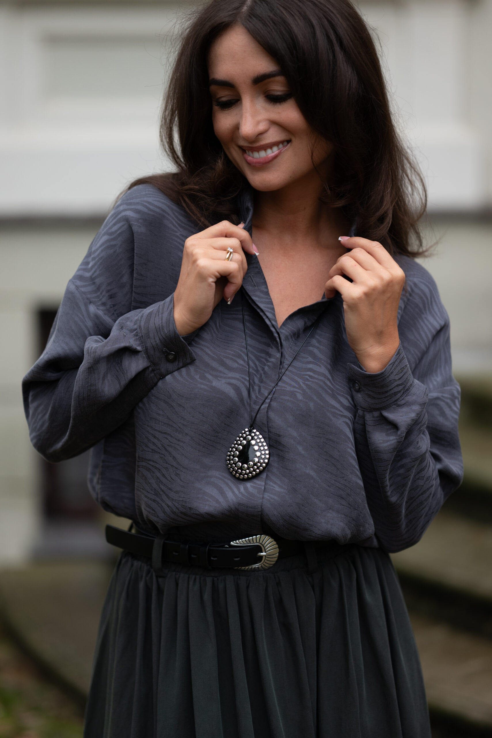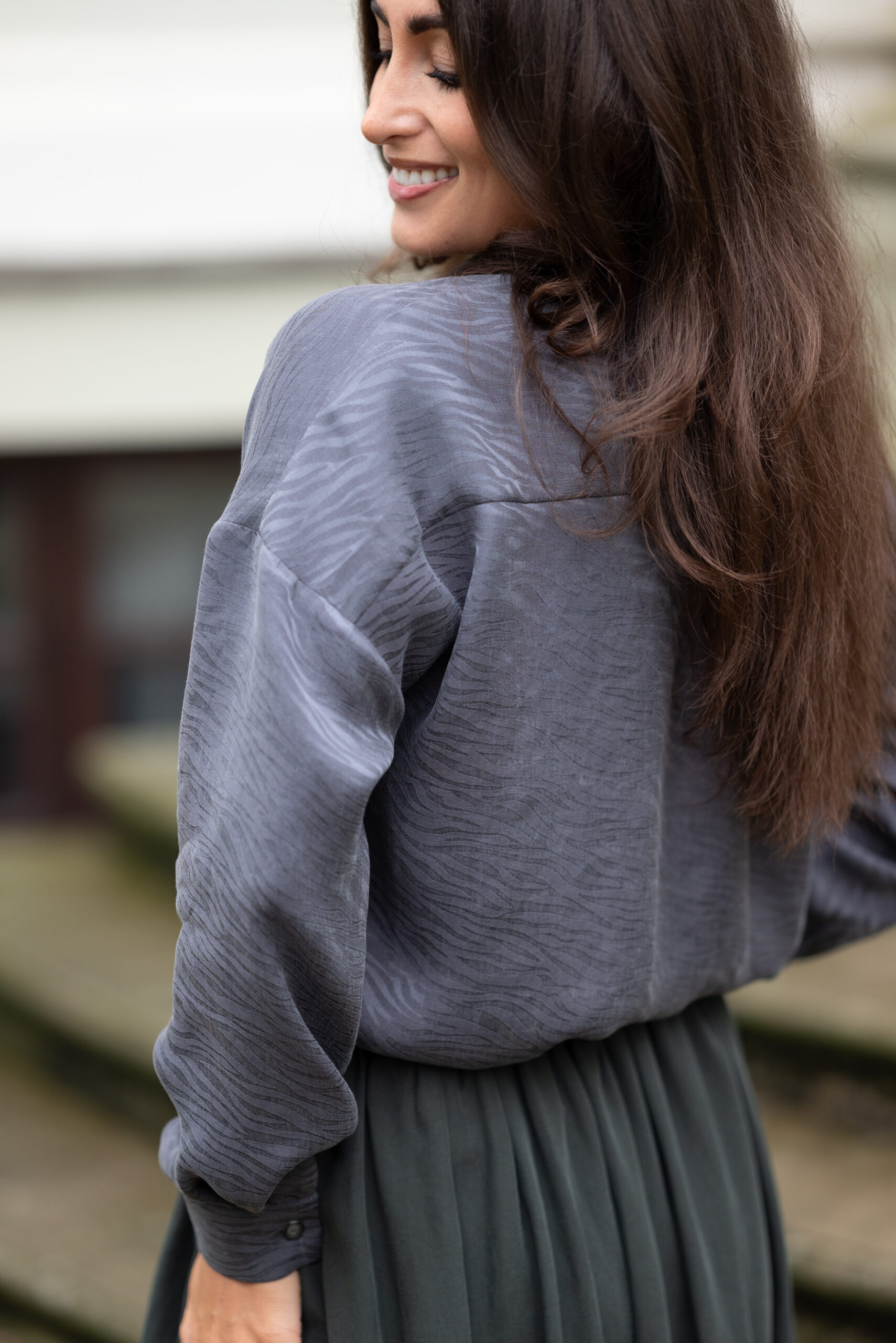 Koszula wykonana ze 100% tencelu — tkaniny znanej z wyjątkowej miękkości, przewiewności i eleganckiego matowego połysku. Delikatna, tłoczona struktura zebry dodaje całości subtelnego charakteru i nowoczesnej faktury.