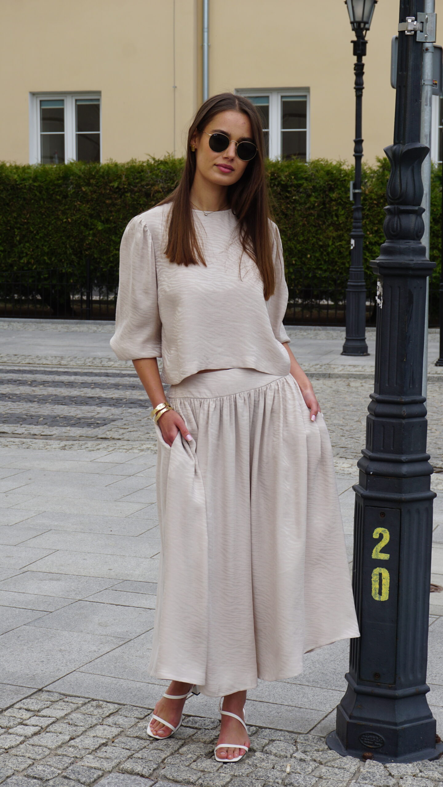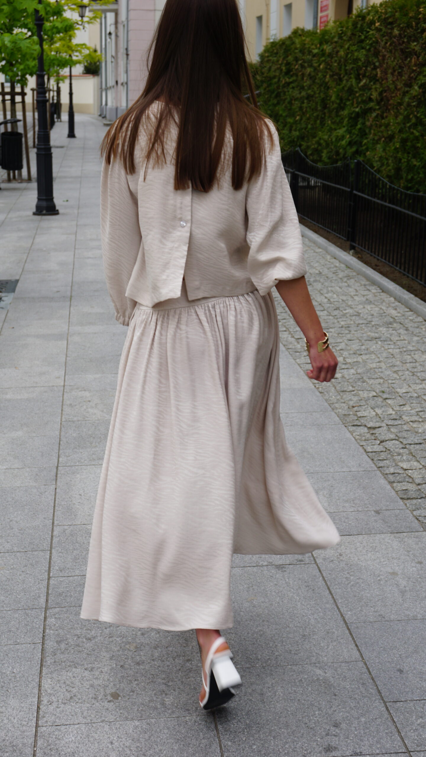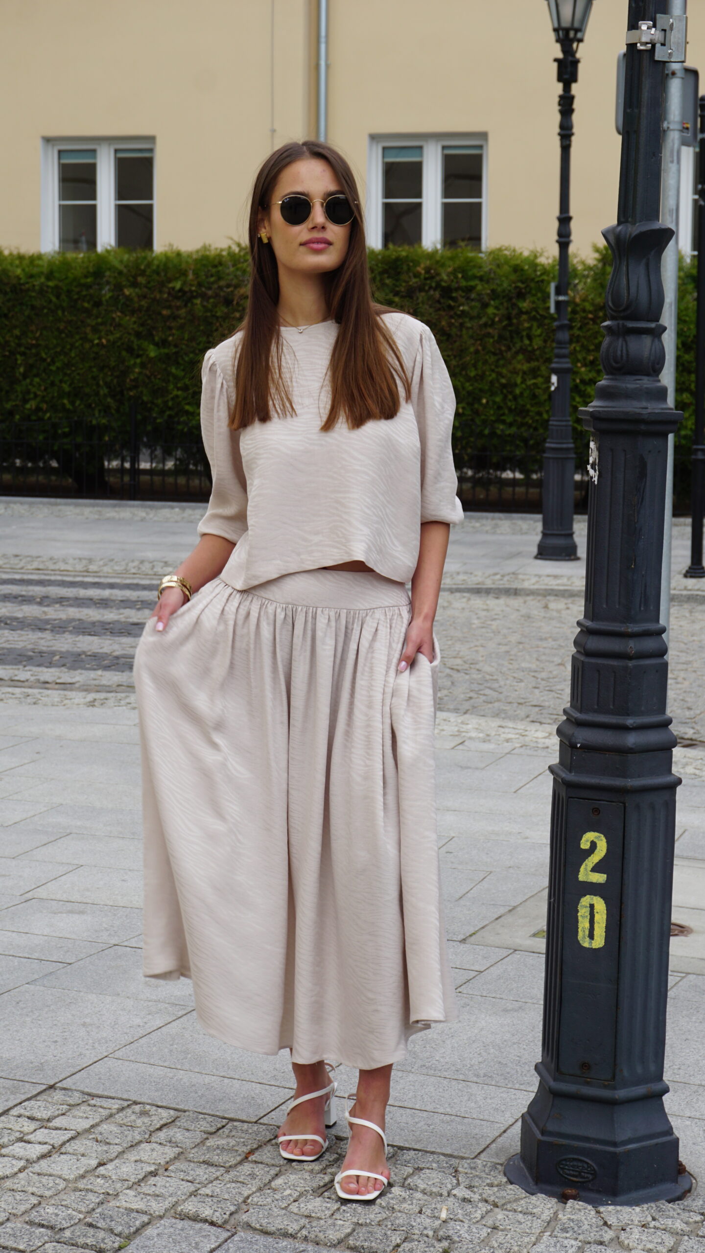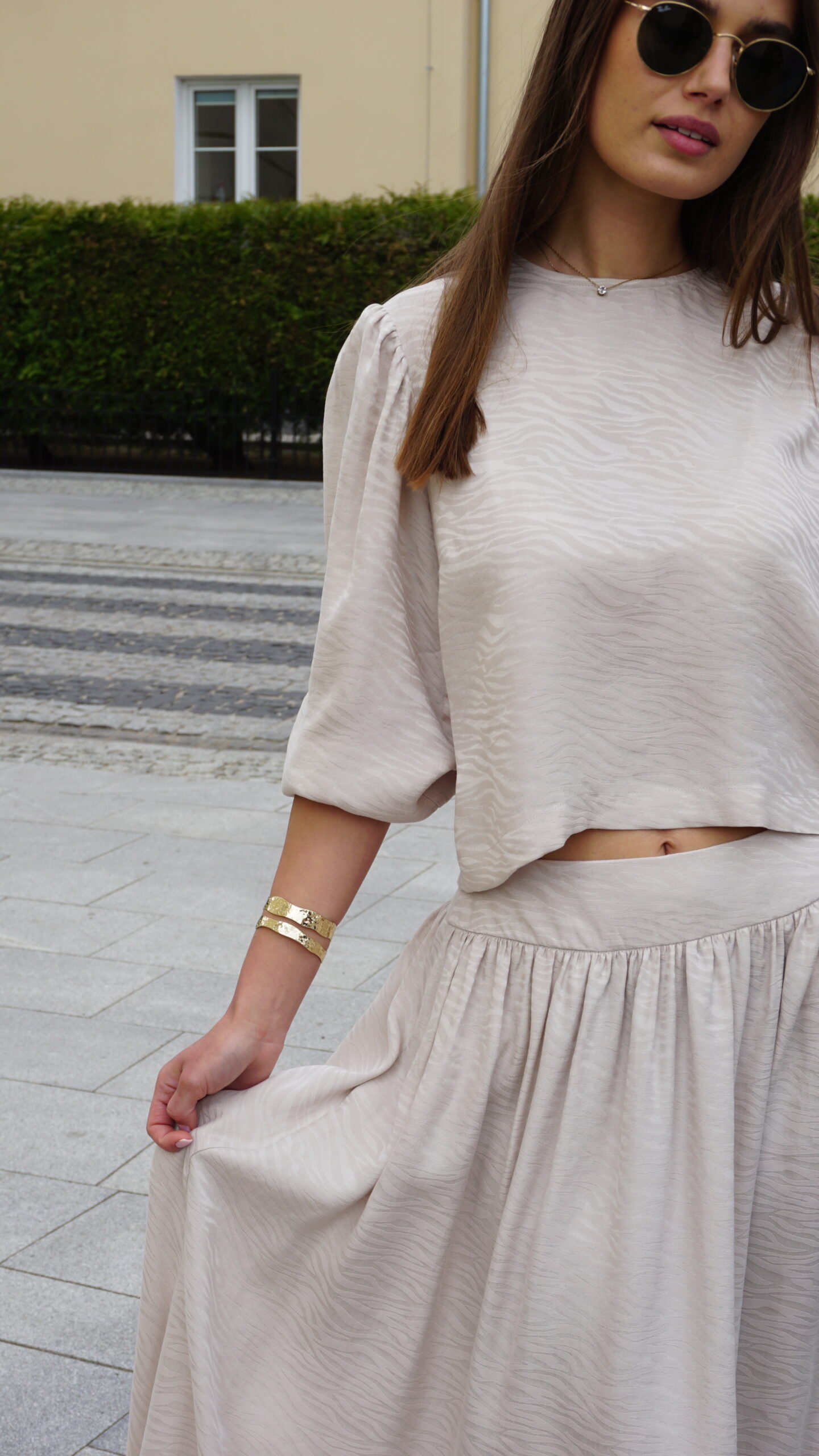 Ta rozkloszowana spódnica midi to świetny wybór dla miłośniczek modowych akcentów i wygody. Zamek z boku ułatwia zakładanie i dodaje subtelnego, eleganckiego detalu. Wzór zebry na tkaninie nadaje jej odważny, stylowy charakter, który z pewnością przyciągnie spojrzenia. Kieszenie po bokach to praktyczny element, dzięki któremu możesz mieć najpotrzebniejsze drobiazgi zawsze pod ręką. Spódnica jest częścią zestawu z bluzką Sana Crem, uszytą ze 100% tencelu – naturalnego, przewiewnego i przyjemnego w dotyku materiału, który jest też ekologiczny. To połączenie stylu, komfortu i troski o środowisko, idealne na codzienne wyjścia czy casualowe okazje.
