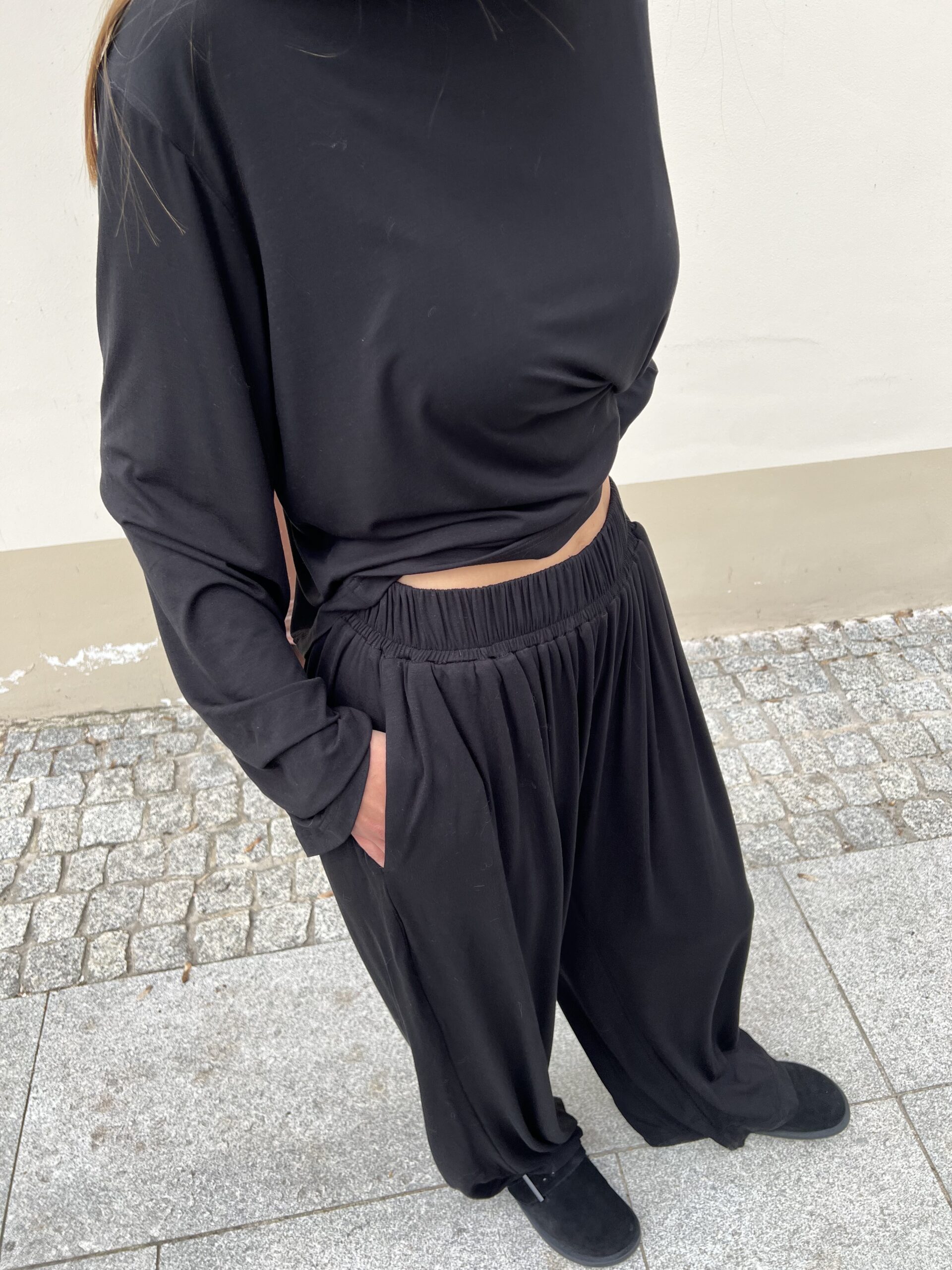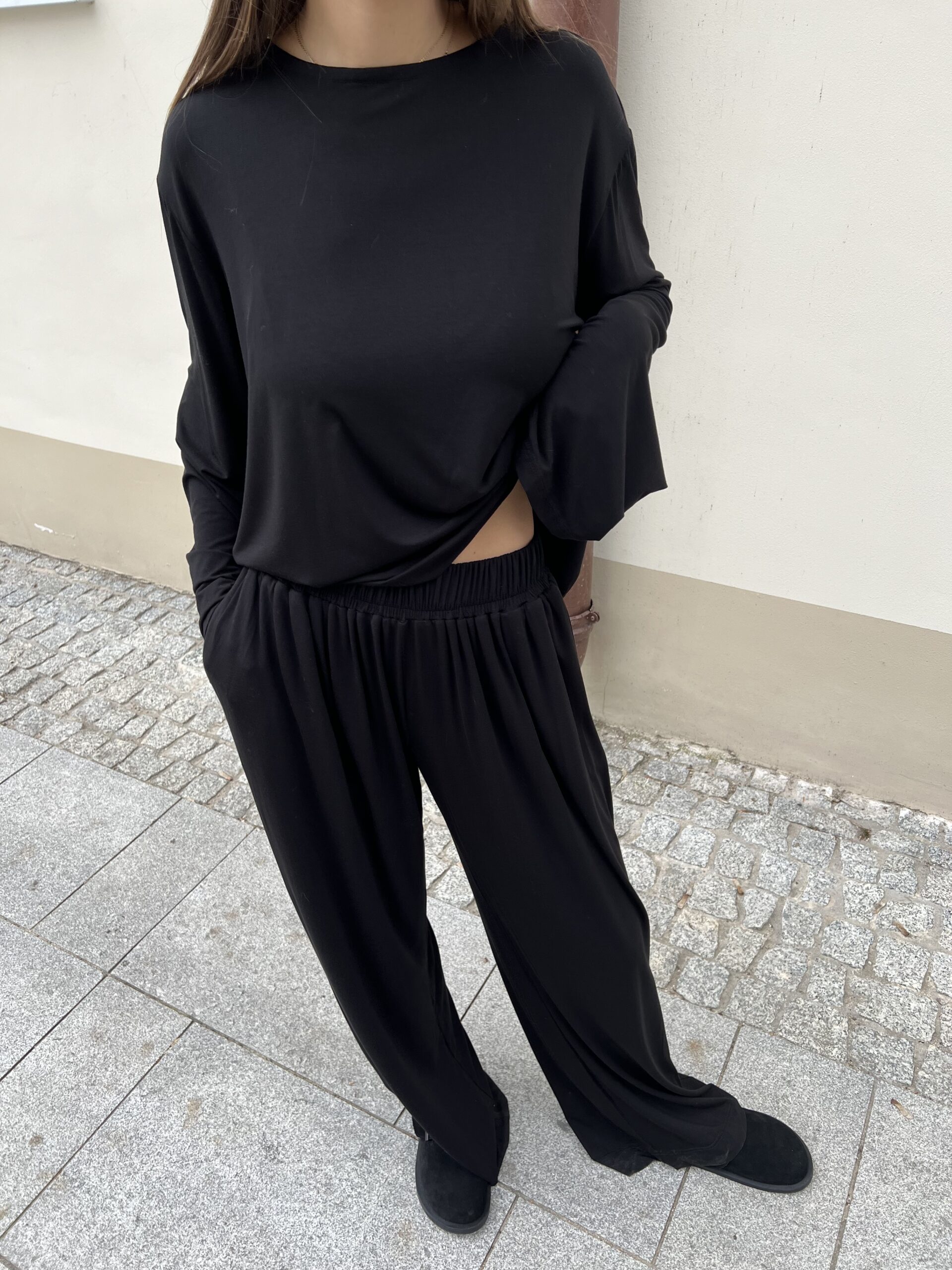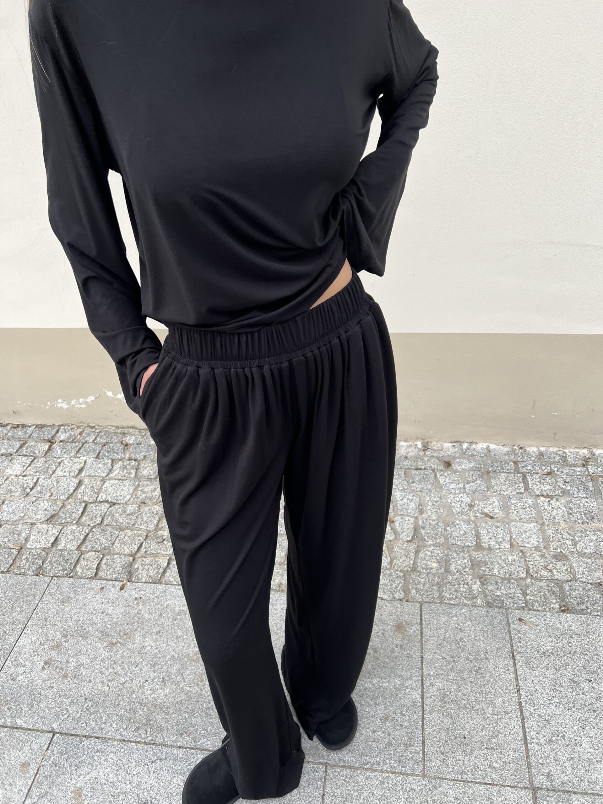 Wygodne, lekkie i elastyczne spodnie uszyte z oddychającej dzianiny bambusowej z dodatkiem elastanu. Elastyczna guma w pasie gwarantuje idealne dopasowanie bez ucisku, a praktyczne kieszenie po bokach dodają funkcjonalności. To połączenie stylu i komfortu, które sprawdzi się zarówno w domowym relaksie, jak i podczas spaceru, pracy zdalnej czy wyjazdu.