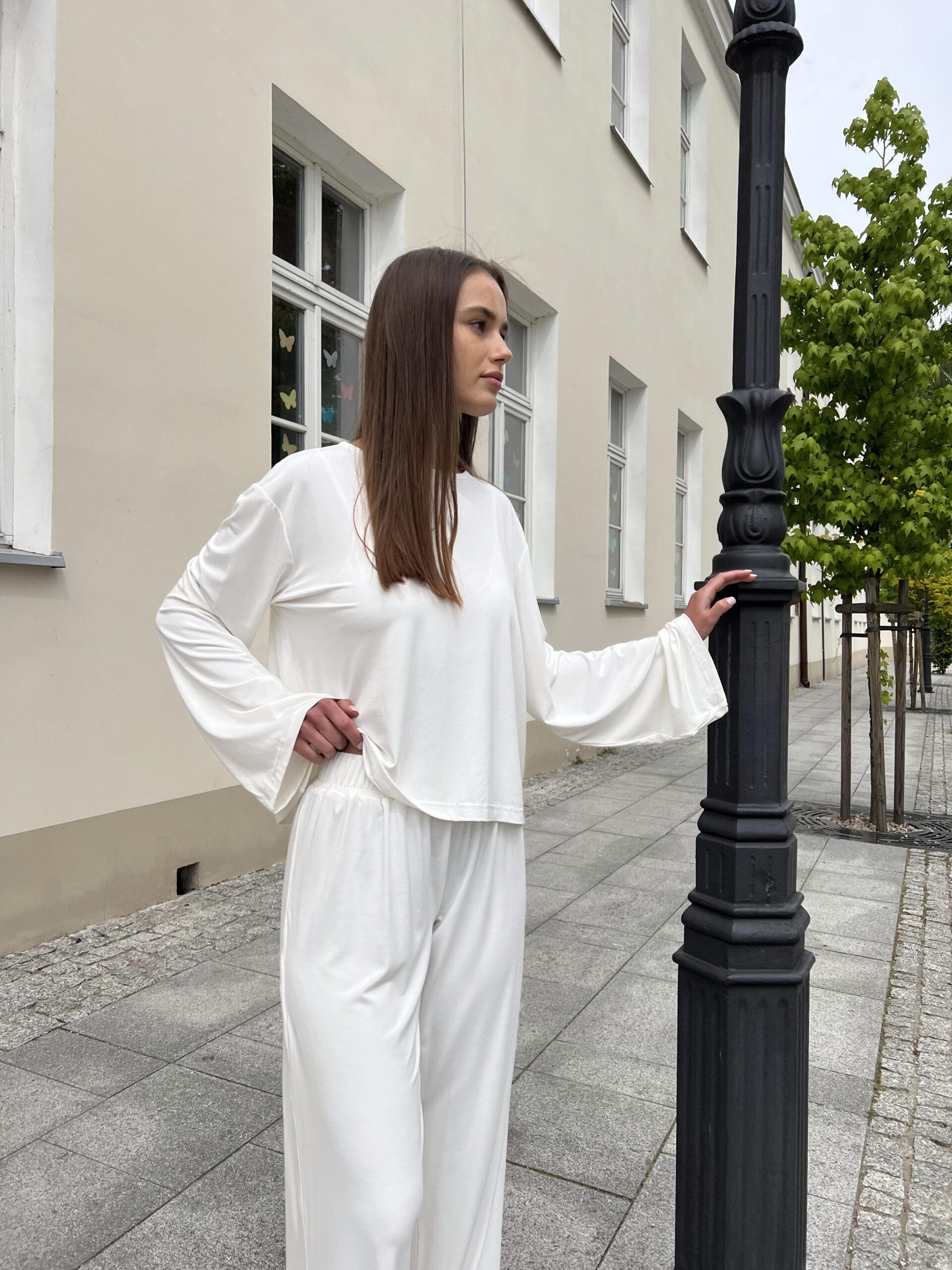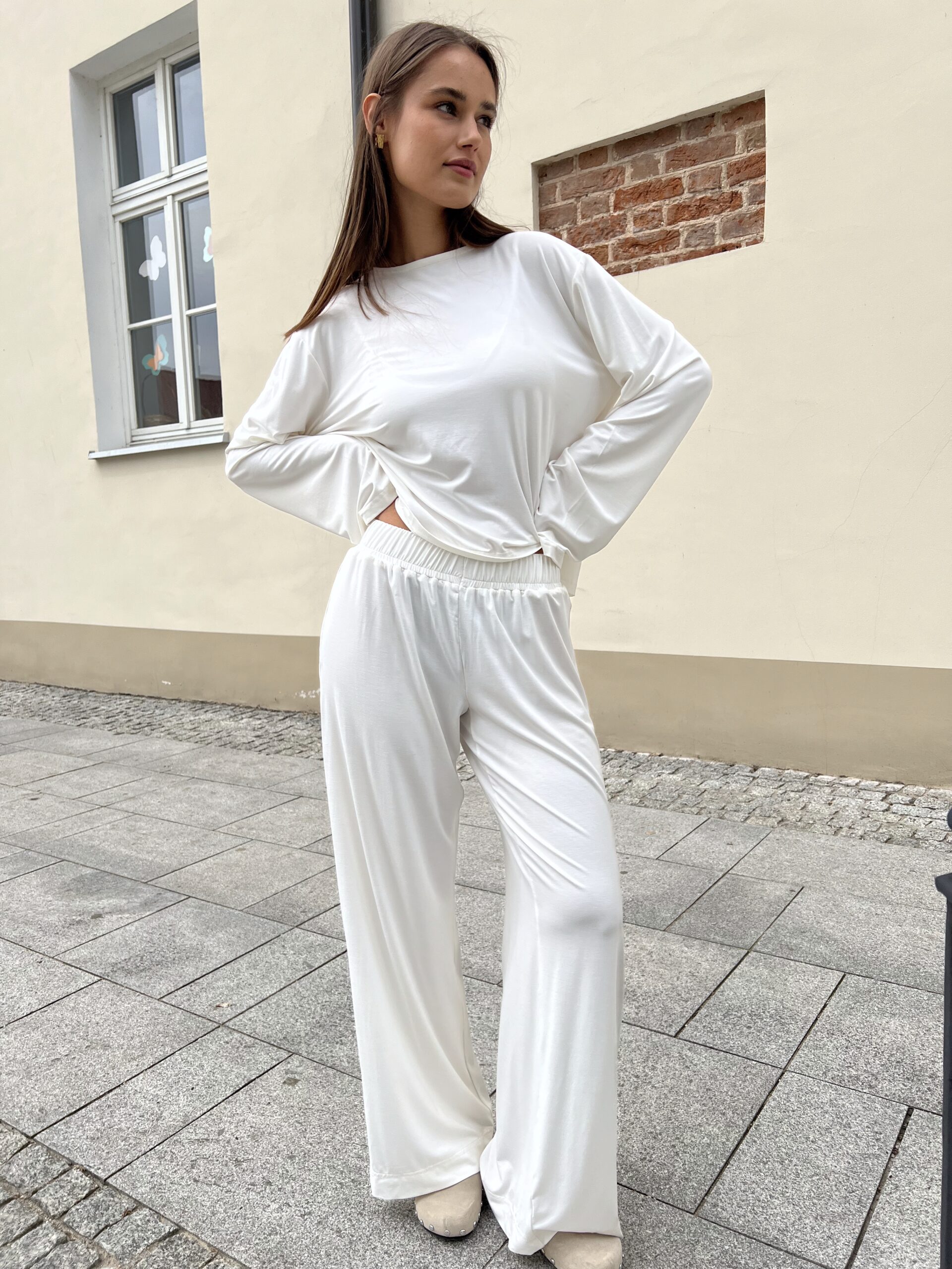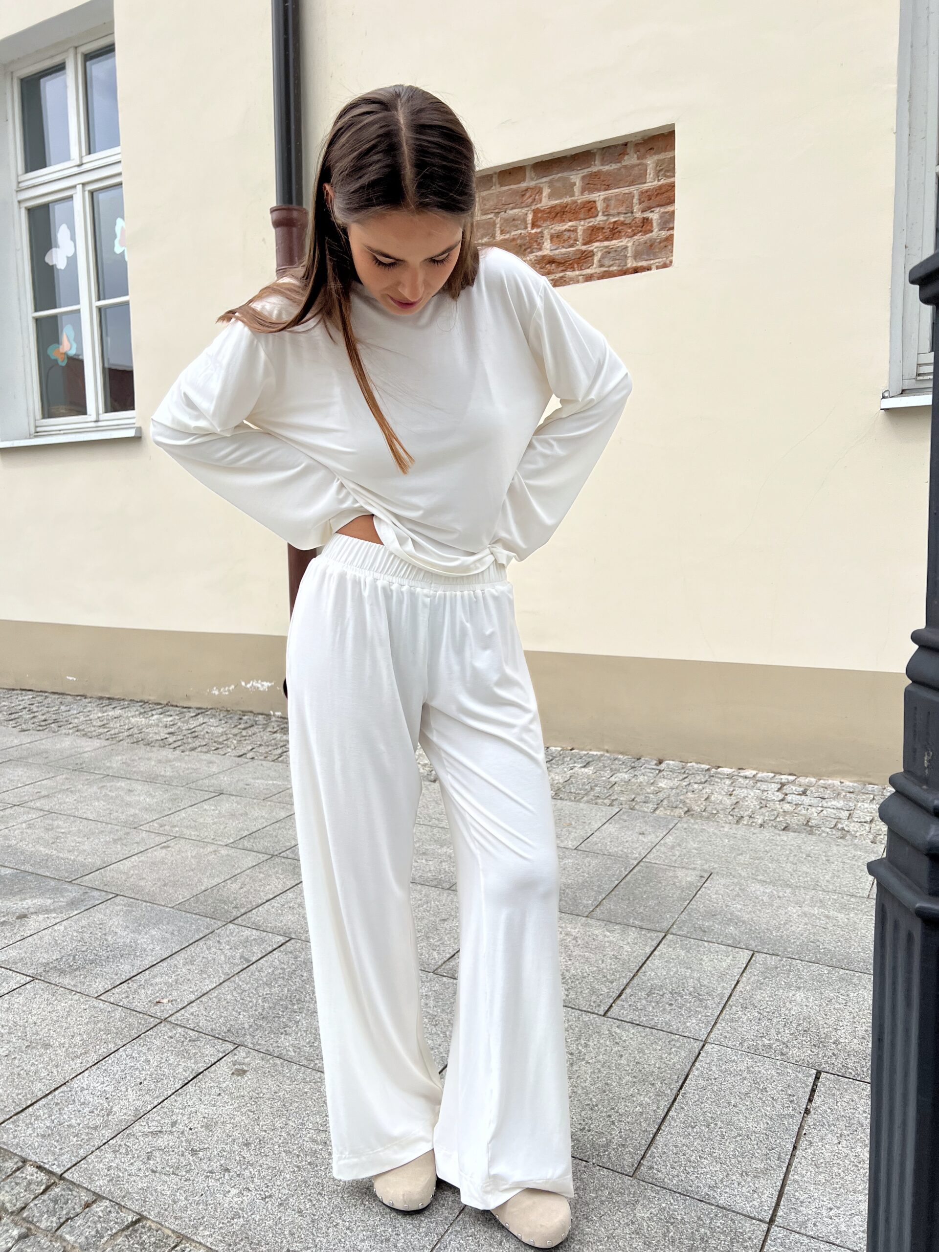 Wygodne, lekkie i elastyczne spodnie uszyte z oddychającej dzianiny bambusowej z dodatkiem elastanu. Elastyczna guma w pasie gwarantuje idealne dopasowanie bez ucisku. To połączenie stylu i komfortu, które sprawdzi się zarówno w domowym relaksie, jak i podczas spaceru, pracy zdalnej czy wyjazdu.