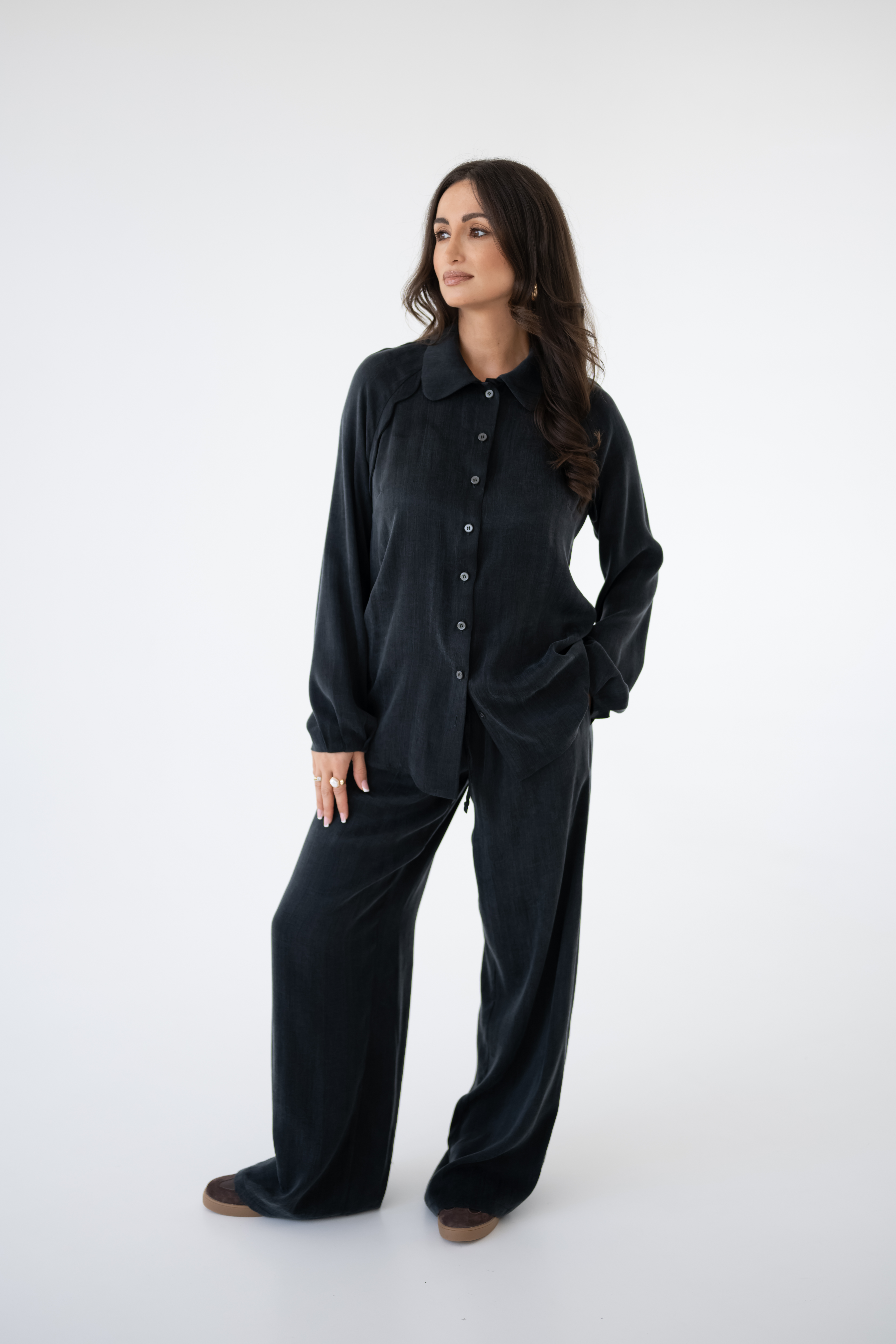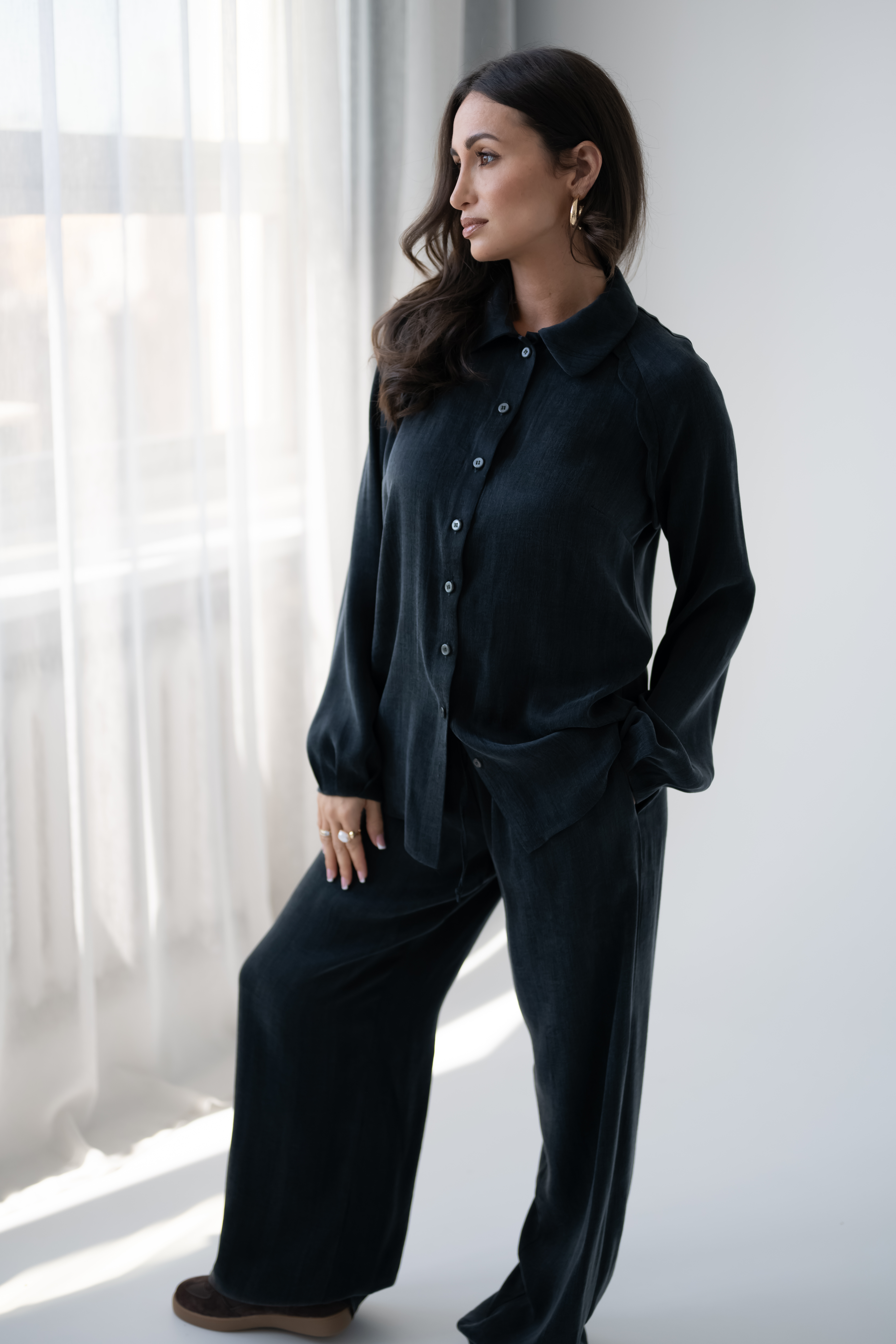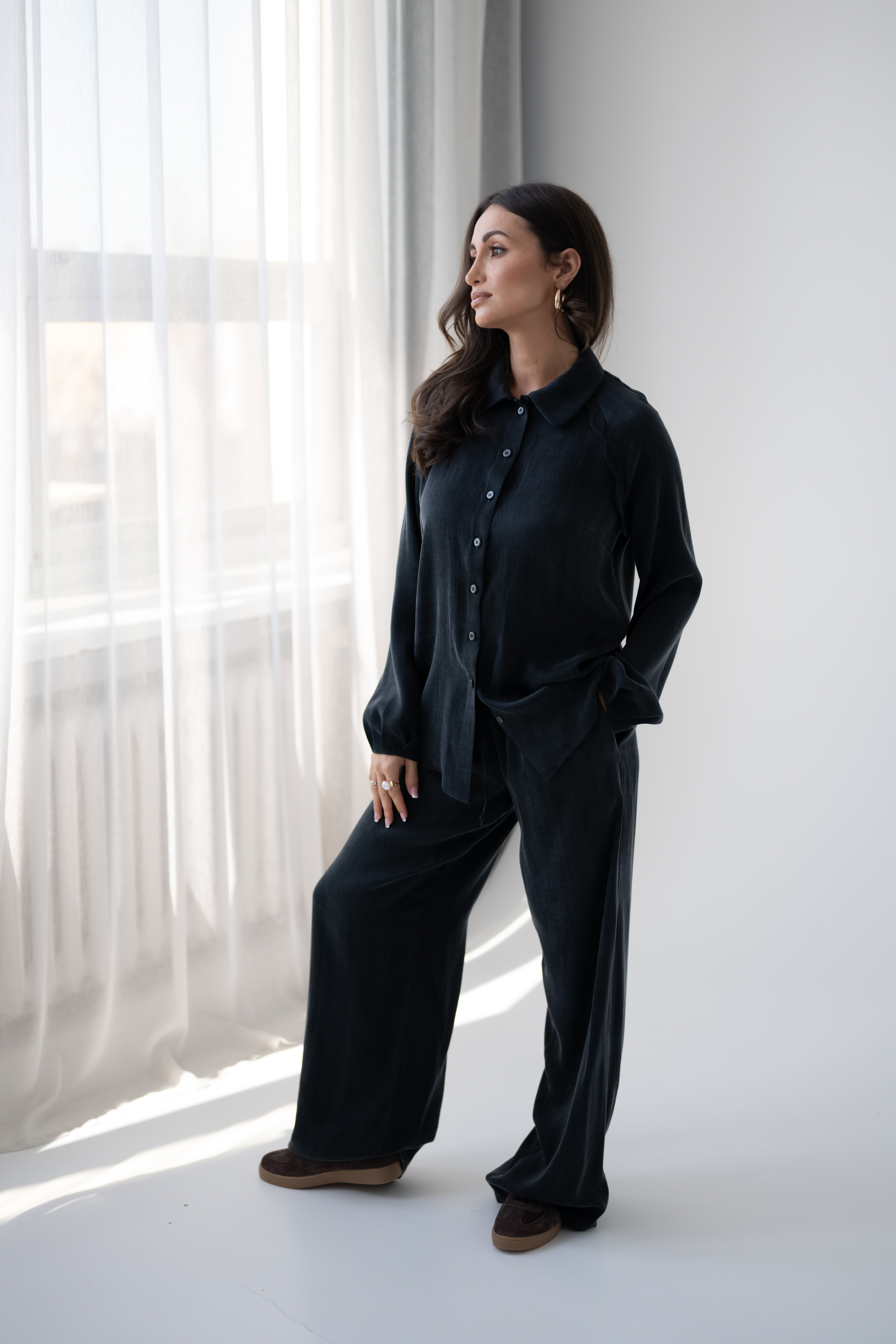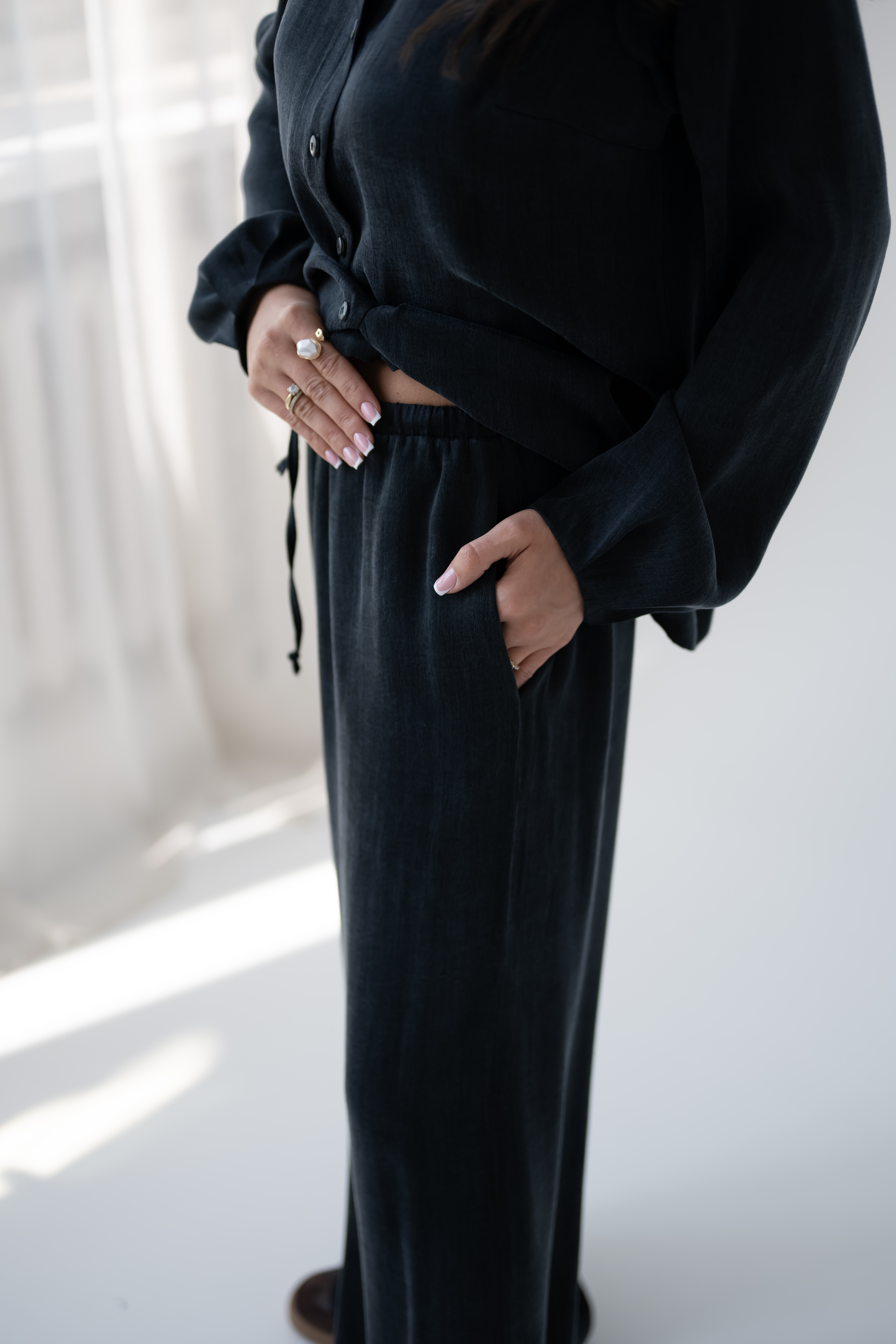 • możliwość stworzenia kompletu z koszulą NOMI  Black                                                                      Marta ma 165 cm wzrostu, 70 cm talii, 92 cm w biodrach i ma na sobie rozmiar S.              WYSYŁKA OD 22 KWIETNIA