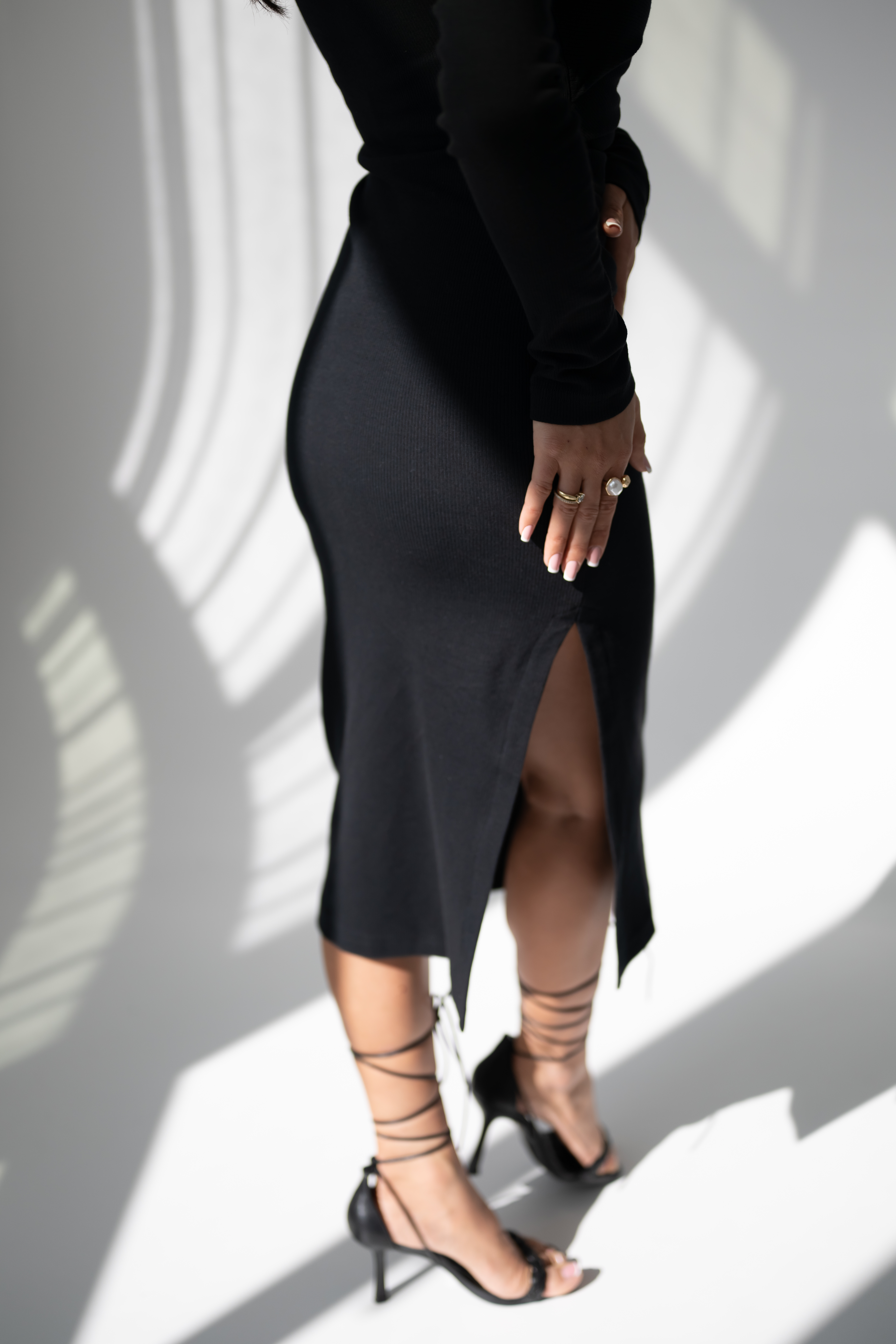 Elegancka i wygodna sukienka wykonana z wysokiej jakości dzianiny na bazie bawełny z dodatkiem elastanu, który zapewnia idealne dopasowanie do sylwetki oraz komfort noszenia przez cały dzień. Model o długości za kolano subtelnie podkreśla figurę, a boczne rozcięcie dodaje lekkości i kobiecego charakteru. Zakładki w okolicy talii optycznie modelują sylwetkę, akcentując jej atuty. Klasyczny, okrągły dekolt pod szyję sprawia, że sukienka jest uniwersalna i ponadczasowa – doskonała zarówno na co dzień, jak i na bardziej formalne okazje. W czarnym, klasycznym kolorze, który łatwo komponuje się z różnymi dodatkami. Idealna propozycja dla kobiet ceniących połączenie komfortu i elegancji.