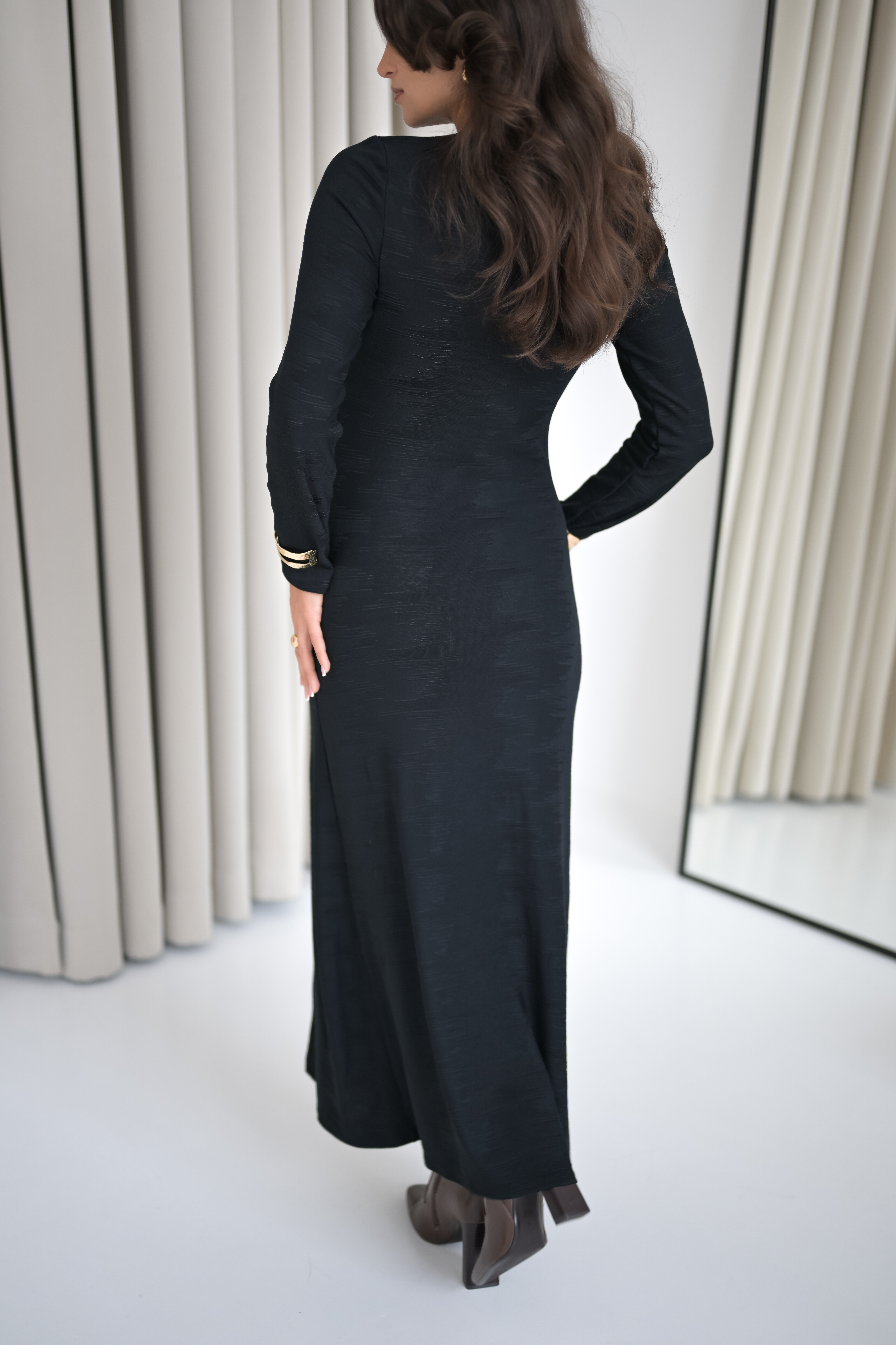 Sukienka maxi o minimalistycznym, a jednocześnie wyrazistym charakterze, wykonana z miękkiej i przyjemnej dla skóry wiskozy z dodatkiem elastanu, który zapewnia komfort noszenia i subtelne dopasowanie do sylwetki.
