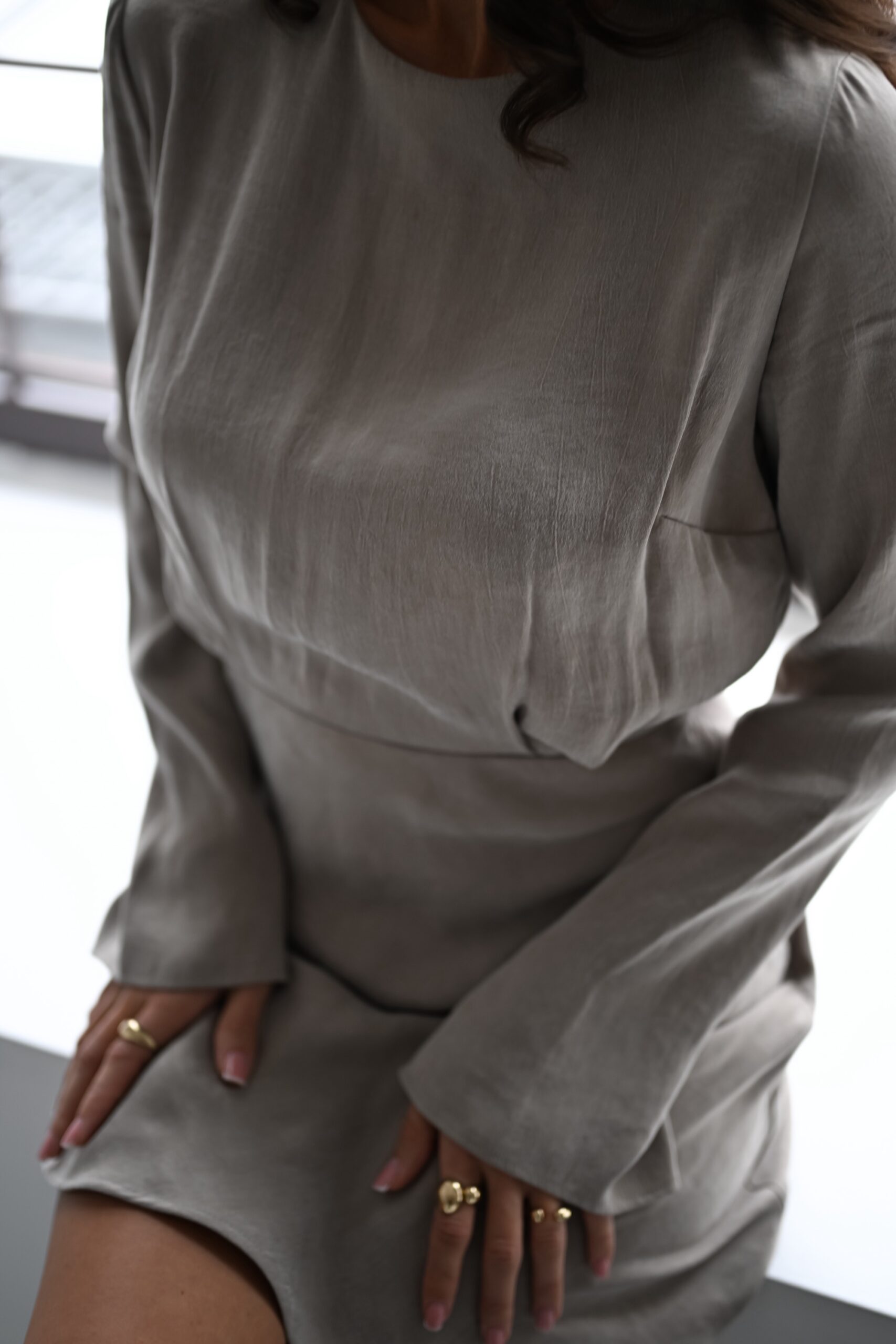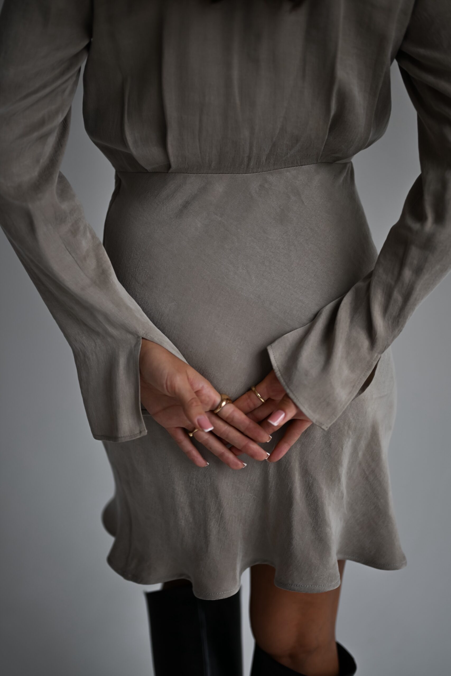 Nowoczesna, prosta i jednocześnie niezwykle kobieca — ta sukienka mini to propozycja dla kobiet, które cenią subtelne detale. Idealna na codzienne wyjścia, spotkania i wieczorne okazje. Rozcięcia na rękawach dodają lekkości i nowoczesnego charakteru. Sukienka posiada zakładki po bokach – z przodu i z tyłu, które delikatnie modelują sylwetkę i nadają jej eleganckiej struktury. Noś ją z botkami, minimalistycznymi sandałami lub eleganckimi balerinami. Świetnie komponuje się z prostymi dodatkami i delikatną biżuterią.