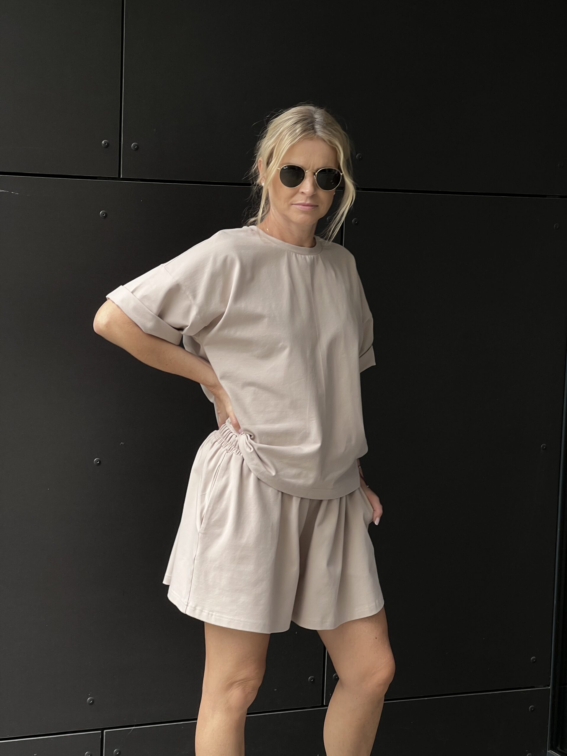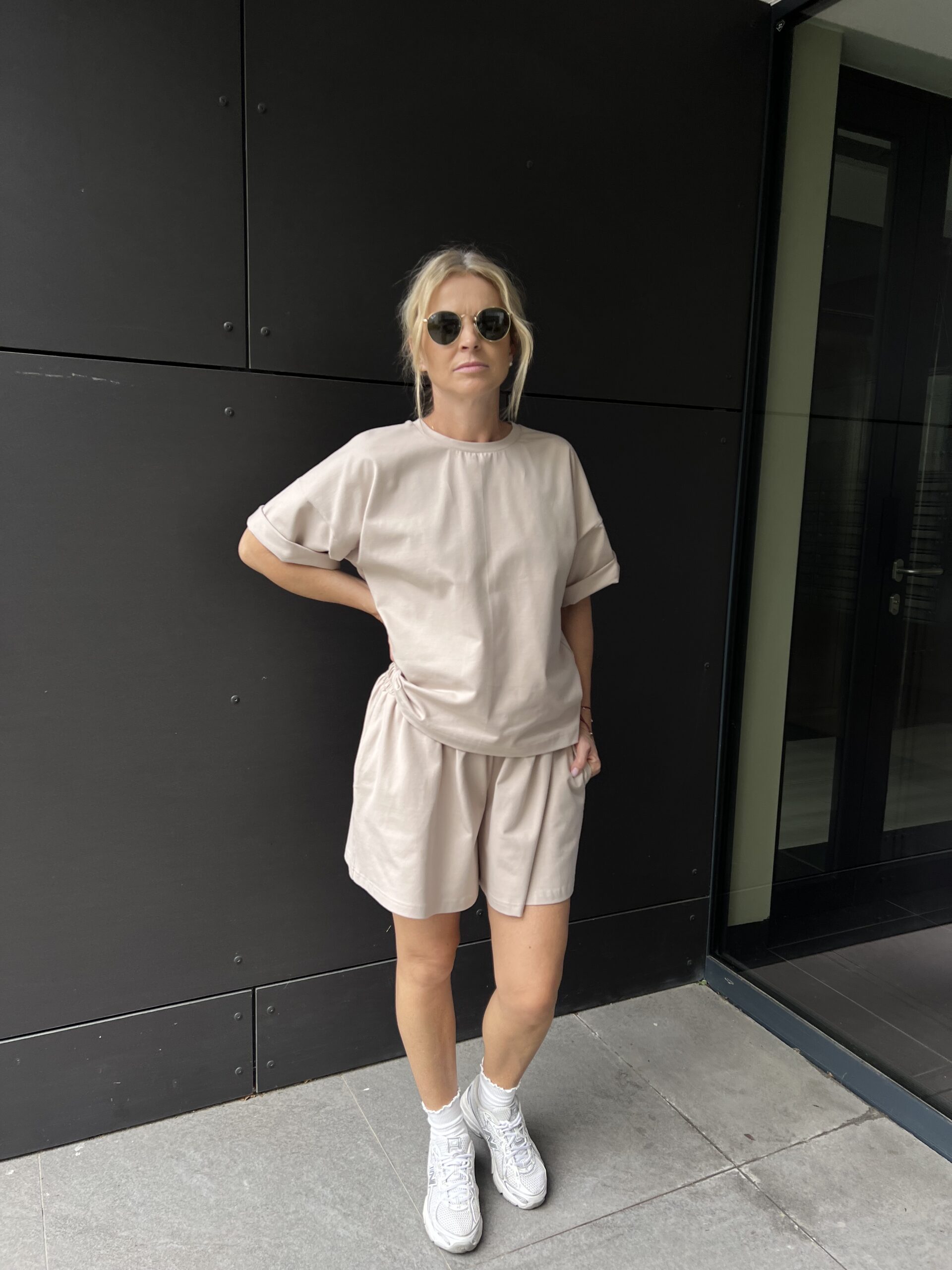 Minimalistyczny t-shirt o dopracowanym kroju, który łączy komfort z uniwersalnym stylem. Uszyty z wysokiej jakości bawełny z domieszką elastanu – dzięki temu jest miękki, przyjemny w dotyku i lekko elastyczny, co sprawia, że świetnie dopasowuje się do sylwetki i zachowuje swój kształt po praniu.