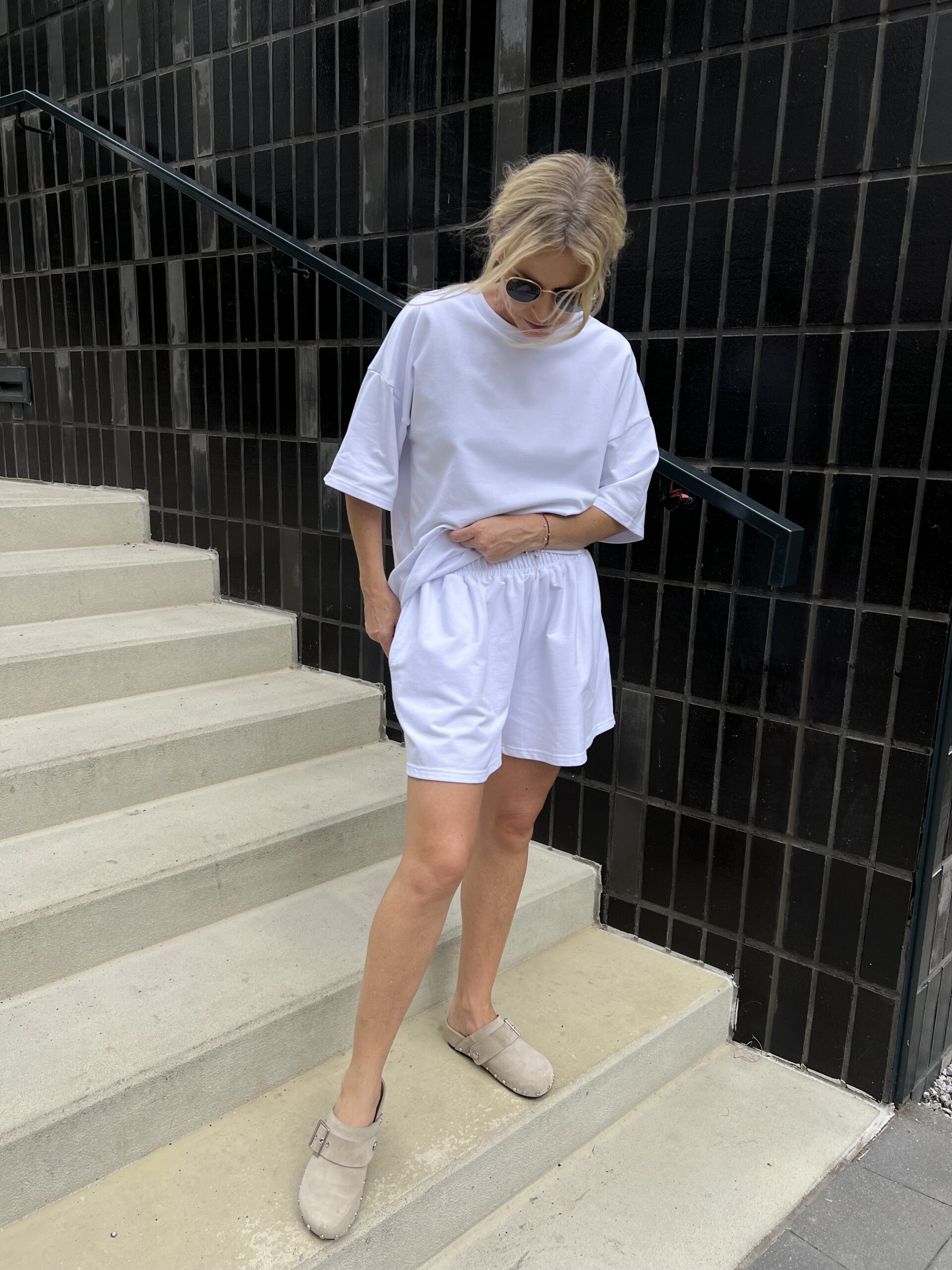 Minimalistyczny t-shirt o dopracowanym kroju, który łączy komfort z uniwersalnym stylem. Uszyty z wysokiej jakości bawełny z domieszką elastanu – dzięki temu jest miękki, przyjemny w dotyku i lekko elastyczny, co sprawia, że świetnie dopasowuje się do sylwetki i zachowuje swój kształt po praniu.